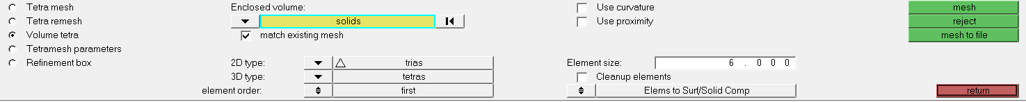• Choose the option Elems to Surf/Solid Comp to assign a component mesh to the component