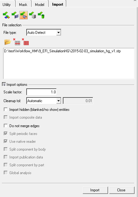 3. Import the geometry CAD file: