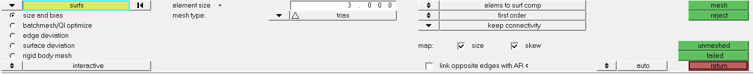 • Select all the surfaces to mesh (click on surfs, then on all to mesh all)