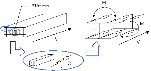Afin de réaliser les simulations, la section du Conducteur Unidirectionnel est discrétisée, c'est-à-dire que le conducteur est décomposé en fils élémentaires dans lesquels la densité de courant est supposée uniforme, comme illustré dans l'image ci-dessous.