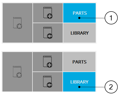 - The PARTS area to visualize and manage all the parts stored in the selected librariesTo reach one of these area, just click on the corresponding button.