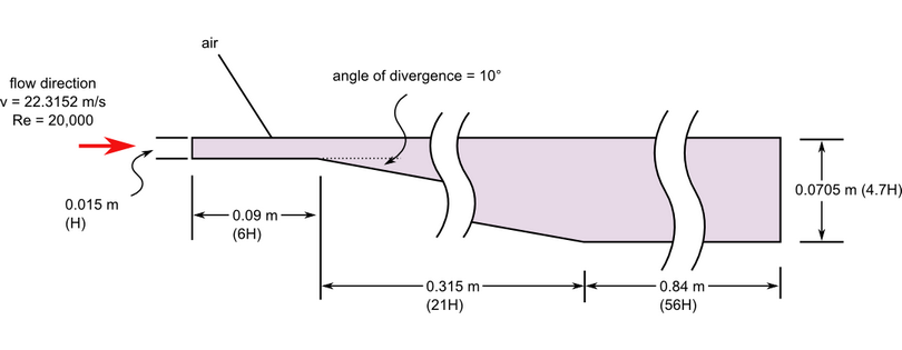 Figure 1. Critical Dimensions and Parameters for Simulating Turbulent Flow with Separation in an Asymmetric Diffuser