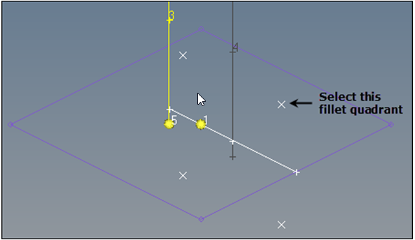 In this step you will create a fillet between two lines.