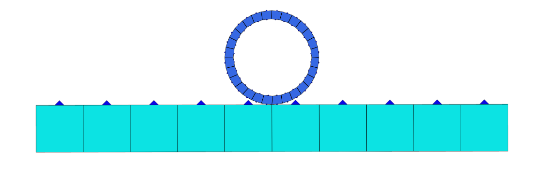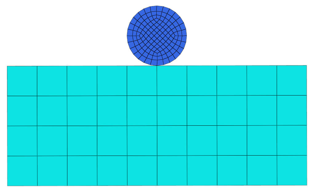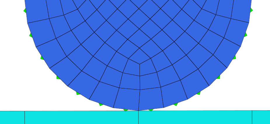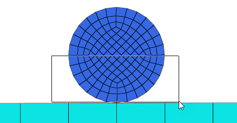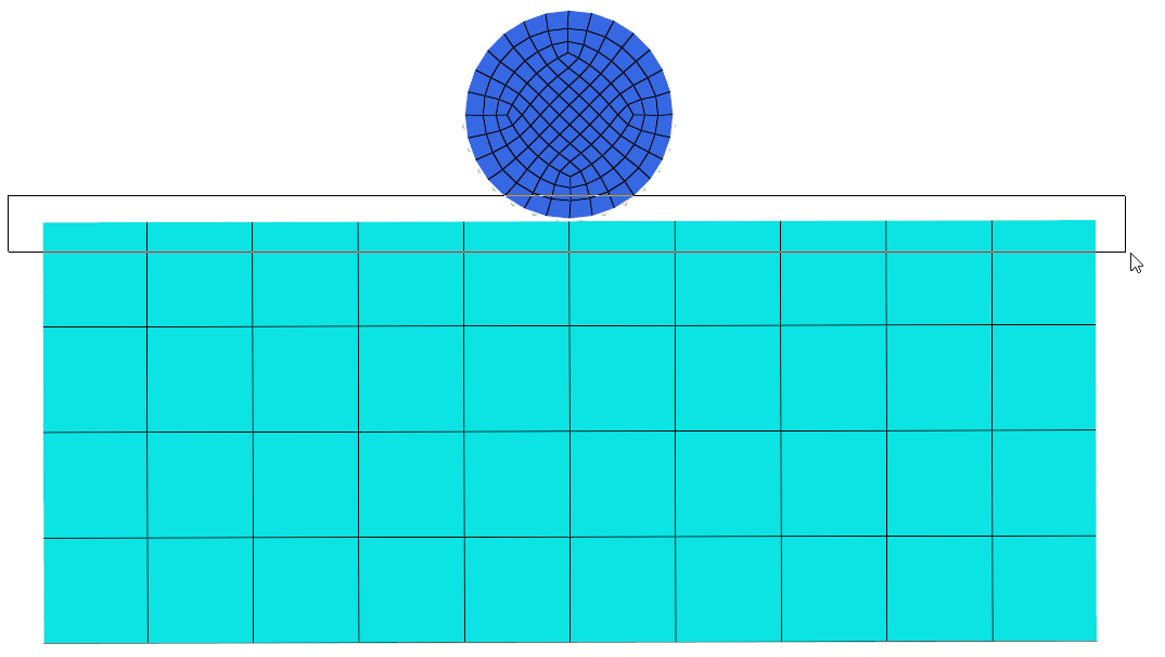 In HyperMesh, you can create contact pairs manually or with the Autocontact tool. The edge of the circular body acts as a Target (secondary) surface, and the top edge of the rectangular part acts as a contact (main) surface.