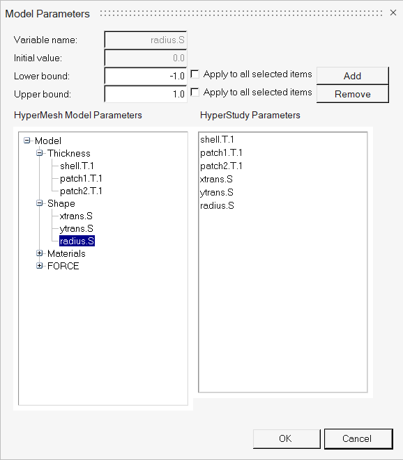 In this step, you will import input variables from HyperWorks to HyperStudy.