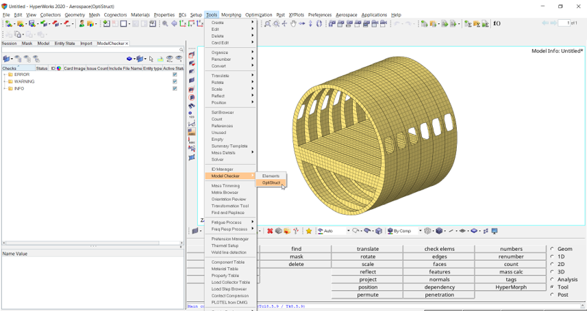 - Run an element quality check in HyperMesh to see if all the elements are within the acceptable criteria.