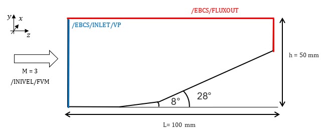 involves a supersonic flow propagating along a wall with two unequal wedges. Each