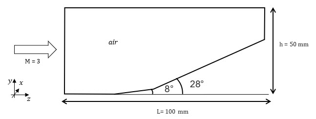 The two wedges slow the flow down with the formation of shock waves. Figure 2. Problem Description for Double Oblique Shock