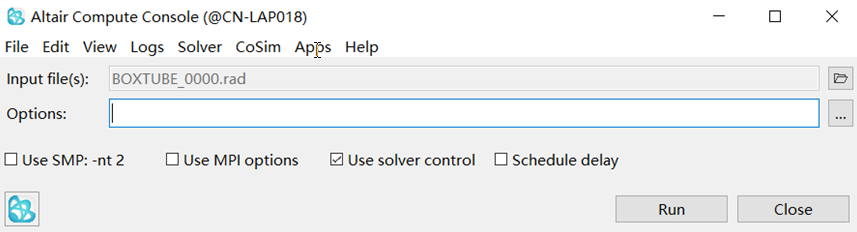 - In the input window, select BOXTUBE_0000.rad.