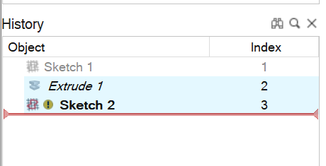 如果草绘实体和参考边/顶点存在尺寸或草绘关系,以及由于任何原因,上游几何体更改触发下游删除参考边/顶点的计算,则这些缺失的参考在草绘内部显示为孤立项。带孤立条目的草绘将在结构历史浏览器中用警告图表表示。