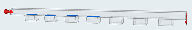 在该模型中,梁和方块之间的最小间距为 0.0 至 0.06 mm。在将搜索距离手动设置为 0.03 mm 后,会检测到最小间距为 0.03 mm 或更小的前四个接触。