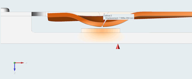 图 3. 初始模型. 按钮和相应的接触零件之间有 0.5 mm 的间距。