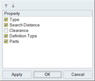 “接触”表格中列出的“搜索距离”显示的是最小间距(两个零件之间准确的最小距离)。该表中为单个接触定义的搜索距离将覆盖操作栏的“寻找选项” 中定义的全局自动搜索距离。