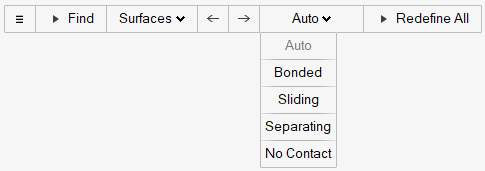 查找相邻的曲面并指定是否将其设为绑定接触、滑动接触、分离接触或不设定接触。