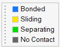 绑定接触显示为蓝色(默认),滑动接触显示为黄色,分离接触显示为绿色。