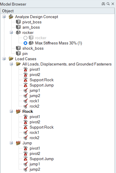 按 F2 键打开“模型浏览器”。确认最大刚度质量 30% 被选中。