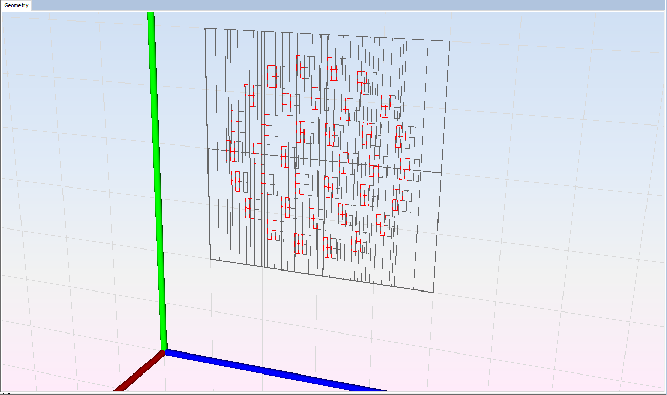 Clicking on 'Add' button, the final visualization for the antenna with a red dashed line for every coaxial feed will be shown.
