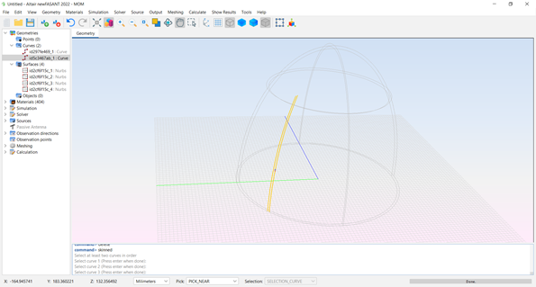 Figure 6. Select the lines - Obtain the surface of the strip conformed to the surface radome.