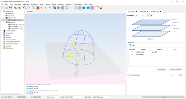 Figure 7. Obtain the surface of the strip - Define a radome. Note: The lightning strip protection is external to the radome.
