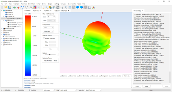 Figure 9. Radiation pattern of the radome plus strip - Visualize the currents.