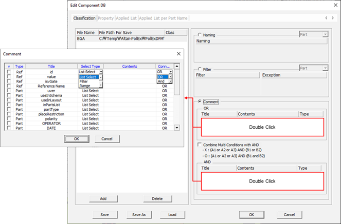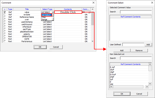 - List Select: Set the design’s component properties in the Select Comment dialog.