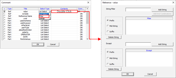 - Contents: Upon double-clicking the contents column, depending on selection type in Select Type column, the tool opens the Comment Select, String Filter, or Range Setting window.