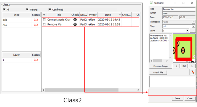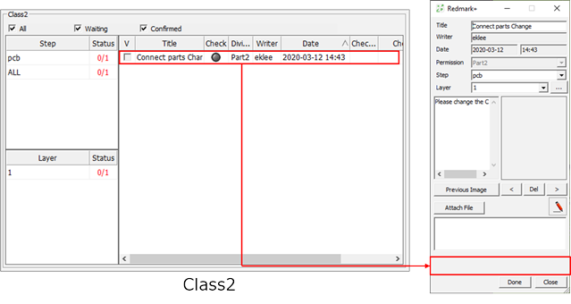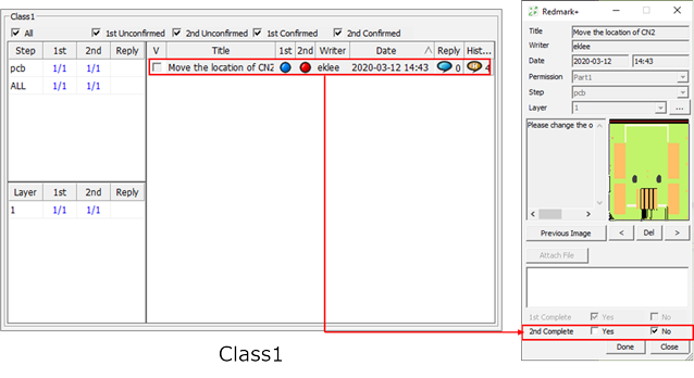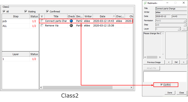 User who is belong to ‘Part2’ has the 1st level permission to check and confirm the content in ‘Class1’ with ‘Yes’ (in blue) or ‘No’ (in red).