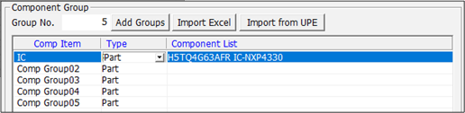 - Add Groups: In order to add a new component group, enter a desired group number then click Add Groups. It will create a new group raw in the table.
