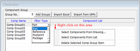 - Delete Selected Comp Group Item: Unnecessary components groups can be removed by choosing a Delete Selected Comp Group Item option.