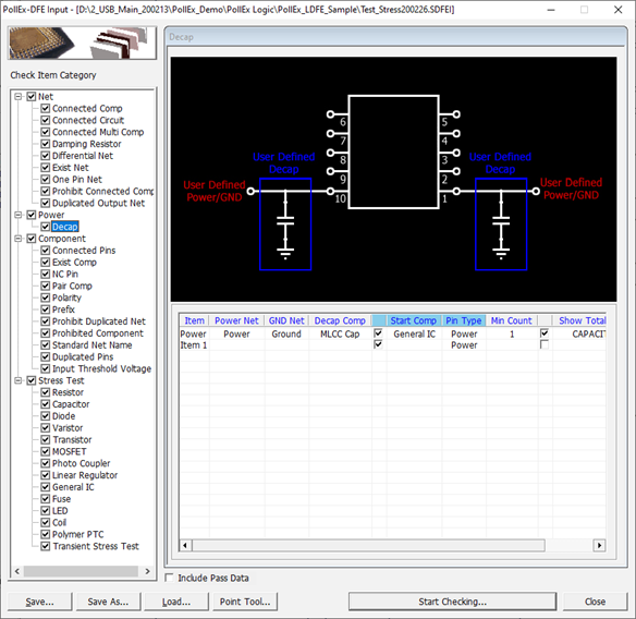 - Power Net: Specify Power Net group to which decap component should be connected.