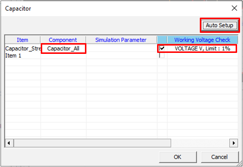 Set capacitor component parameters for the Transient Stress Test item.