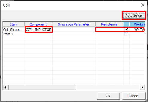 Set coil component parameters for the Transient Stress Test item.
