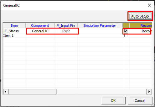 Set General IC component parameters for the Transient Stress Test item.