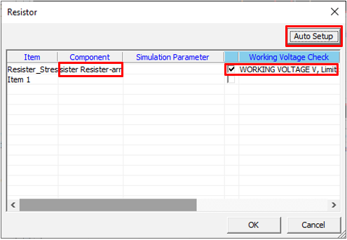 Set resistor component parameters for the Transient Stress Test item.