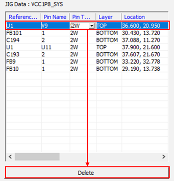 The selected net is displayed in the window.Note:must be activated to add the JIG data.