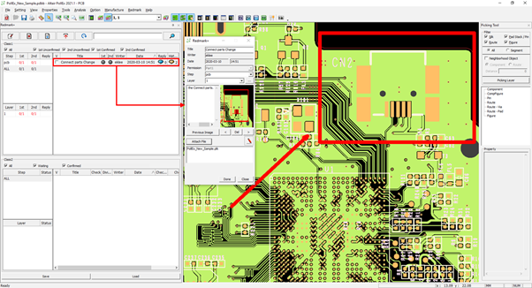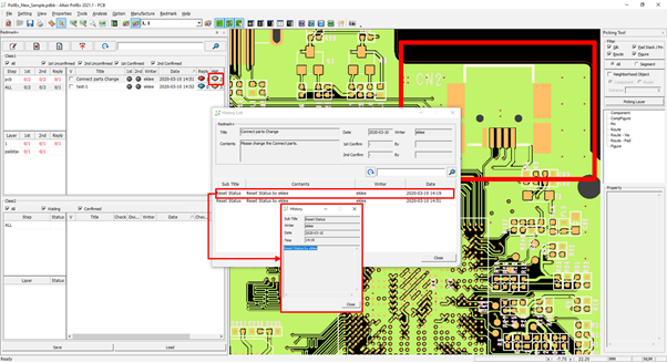 by directly displaying on the layer or point that needs to be revised or reviewed in the PCB
