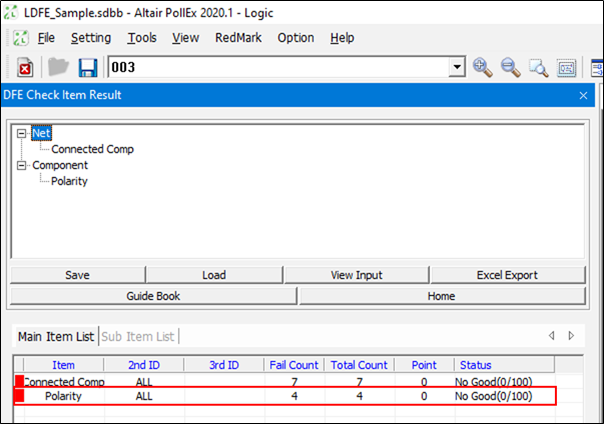 PollEx Logic DFE starts checking for selected checking items. After running, PollEx Logic DFE changes its window for results display.