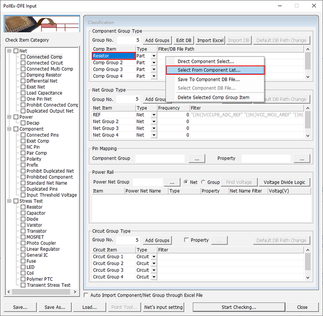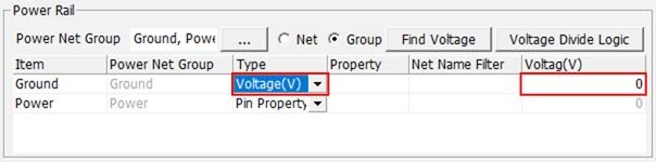 The Select Group dialog opens. You can assign component group that will be considered as open state during searching voltage rail.