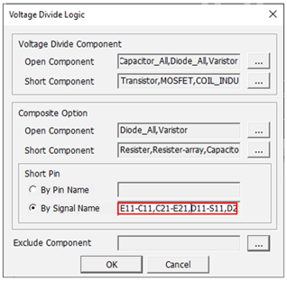 The Stress Test Option dialog opens. You can specify the conditions to be used to search the voltage rail and signal net. Upon double clicking this field.