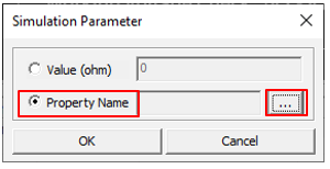 The Simulation Parameter dialog opens. You can assign a resistor value by entering resistor value or specifying the property name where the resistor value is defined.
