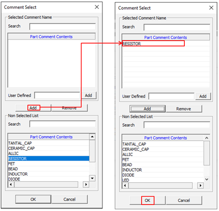 Under Part Comment Contents, select RESISTOR and