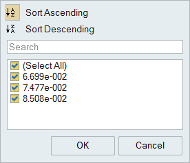 • To sort the order of a column in the table, click the column header. Or you can click or to select Sort Ascending or Sort Descending.