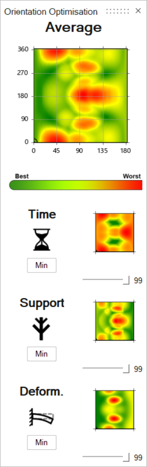 Optimize the orientation of the print part to minimize print time, supports, and/or deformation. You can also orient the part based on a weighted average of all three factors.