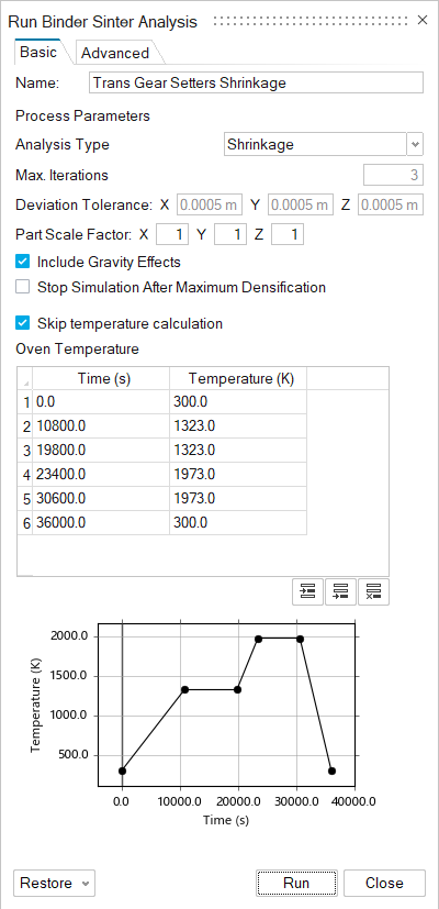 - Set the oven’s final temperature for the analysis. The solver takes the temperature curve into account and ends the analysis when the temperature is trending down.