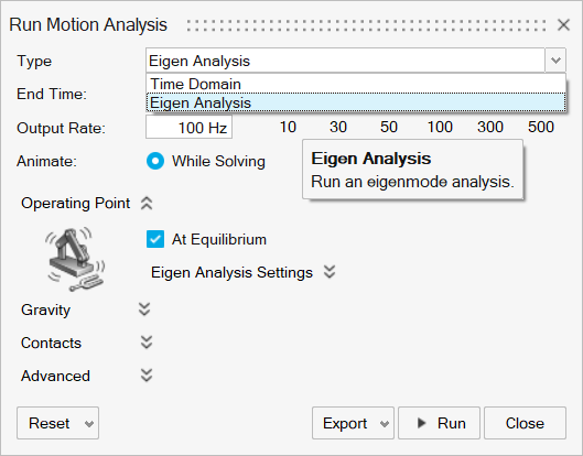 - In the Run Motion Analysis window, select , and then select a unit system.