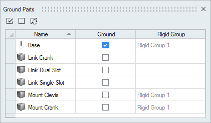 The Ground Parts table lists all of the parts in your model and whether they are ground or not.