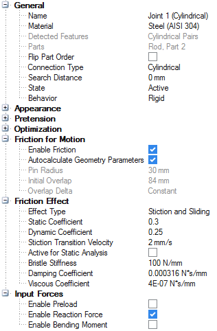 Forces that arise from frictional effects can be included in motion analysis for rigid joints using the Property Editor.