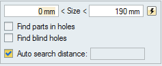 - Specify a minimum and maximum size range for the hole diameter. This option applies to