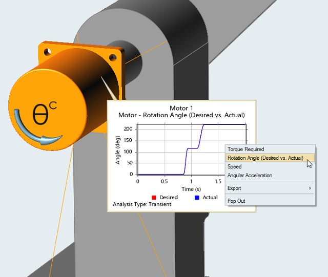 Motors and actuators have a profile option on the microdialog that allows you to change how the shaft moves as time elapses (or another independent variable changes).