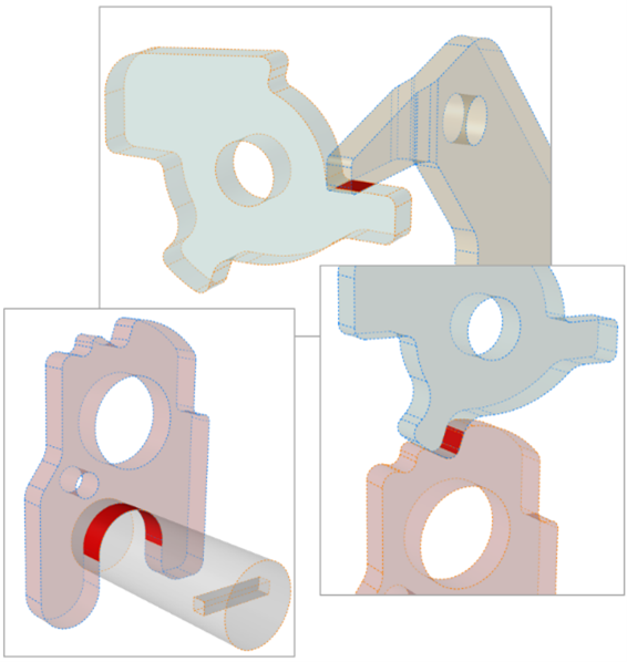 List Intersections: Display the Intersections Table, which lists the intersecting parts of all visible motion contacts in the model. Click on a name in the table to review the corresponding intersection in the modeling window.
